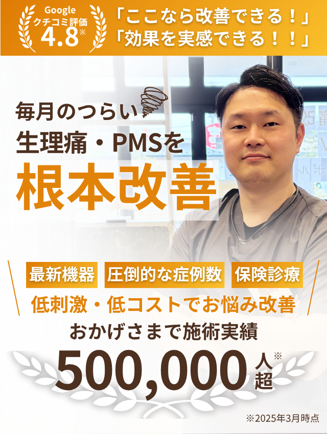 当院では、生理痛やPMSに特化した専門技術と最新設備を導入し、負担が少なく続けやすい施術と料金設定で、お客様のお悩みの根本改善をサポートいたします!!
