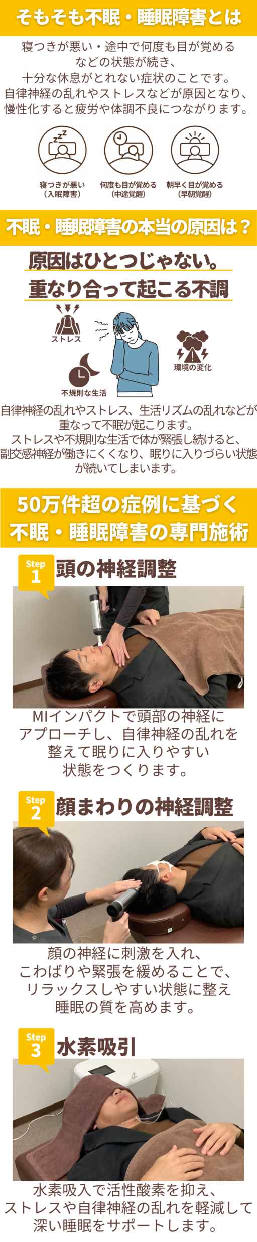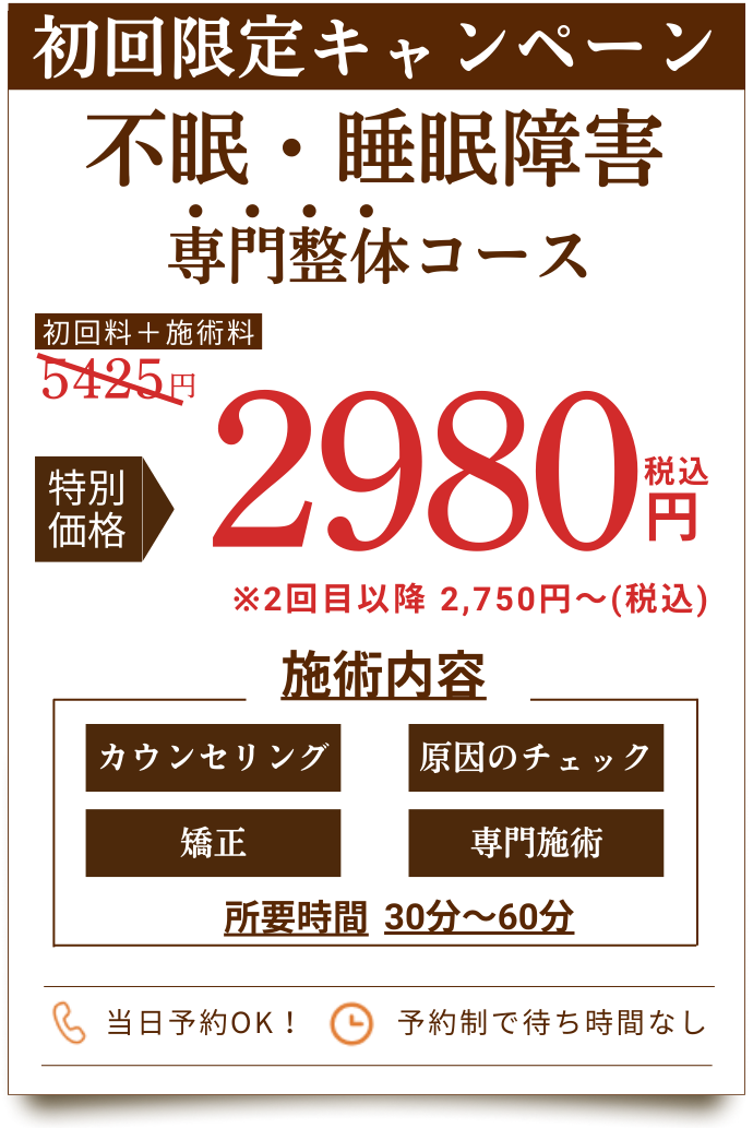 当院では、不眠・睡眠障害に特化した専門アプローチと 最新機器を導入した施術により、身体への負担が少なく続けやすい施術と料金設定で、お客様のお悩みの根本改善をサポートいたします!!