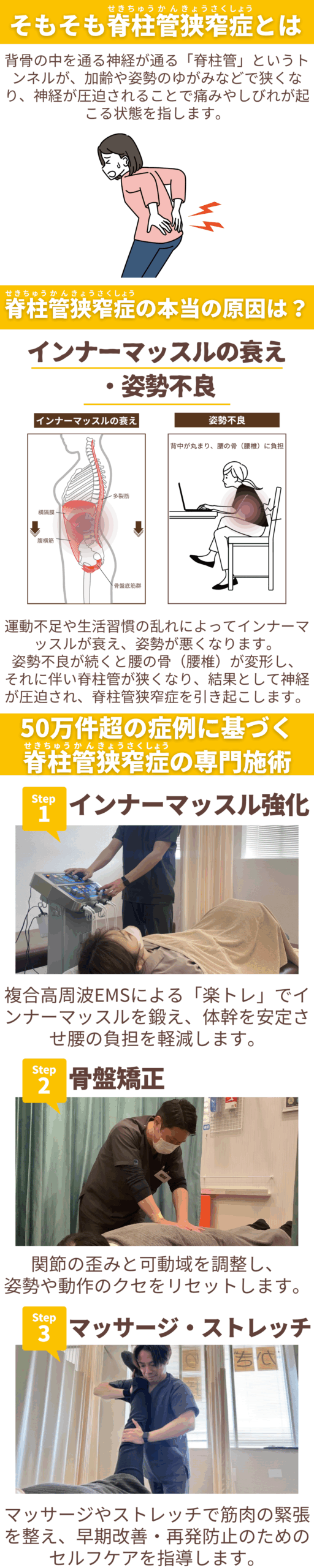 メニュー メニュー トップページ 症状別メニュー メニュー 頸椎ヘルニア 肩こり 腰痛 脊柱管狭窄症 猫背・姿勢矯正 こんなお悩みでお困りではありませんか? こんなお悩みでお困りではありませんか? 立っている時や歩いている時の腰・お尻・足が痛い 腰を反らすと、足の痛みやしびれが増して辛い 両足の裏に痺れ、感覚の麻痺がある 注射や手術には頼りたくない どれか1つでもあてはまる方は… 今すぐ当院に ご相談ください 今その悩みを放っておくと、症状のさらなる重症化・長期化につながります。ですが安心してください。当院の脊柱管狭窄症改善の専門技術や最新設備、負担が少なく継続しやすい施術と料金設定で、お客様のお悩みを解消します!! クオルドの強み 専門的なスキルと知識 01 全スタッフが国家資格を保有し、初回研修や月ごとの技術研修、専門家からの指導を通じてスキルと知識を継続的に強化しています。50万件超の豊富な症例をもとに、他院では改善しなかった症状にも根本から改善へ導きます。 最新機器による効果的で 身体にやさしい施術 02 医学的に効果が認められた最新機器を使用した施術により、通常のトレーニングでは鍛えにくいインナーマッスルや、手技では届きにくい神経にも直接アプローチが可能です。身体への負担を抑えながら、より効果的に症状の根本改善を目指せます。 保険診療のため 継続しやすい 03 中長期的な施術が必要な患者様でも安心。金銭的な負担が少なく改善するまで安心して通えます。 クオルドと他院はココが違う! クオルドと他院はココが違う! \お客さまの声/ 腰の痛みで遠くから通われているお客様 「自宅から少し距離はありますが定期的に通っています。体が楽になります。まさに癒しの空間!」 ※お客様の感想であり効果を保障するものではありません 来院から施術までの4つの流れ 来院から施術までの4つの流れ STEP1 症状の問診 来院後、受付にてカウンセリングシートを記入いただき、50万件超の豊富な症例対応実績を元に丁寧にヒアリングいたします。 STEP2 検査・状態の説明 ヒアリングをもとに、姿勢分析アプリやハイボルト機器を使用し、筋肉や関節の状態を丁寧に検査します。痛みの変化は毎回10段階で確認し、専門用語を使わずわかりやすくご説明。あわせて、治療の頻度や期間も明確にご案内いたします。 STEP3 施術 国家資格を持つスタッフが、50万件超の症例実績と最新機器を活かして、通常の手技では届きにくい筋肉や神経にもアプローチ。医学的に効果が認められた機器を用いることで、身体への負担を抑えつつ、根本改善を目指します。 STEP4 セルフケア指導・施術計画 早期改善・再発防止に向けて自宅でできるセルフケアや生活指導を行うとともに、今後の効果的な施術計画をご提案します。 よくあるご質問 Q. 決済方法を教えてください。 A. 現金・クレジットが使用可能です。 Q. 健康保険は使えますか? A. 健康保険はもちろんのこと、母子家庭・乳幼児・子ども・障害・原爆医療助成制度なども適応されますのでご安心してご来院ください。 その他、労災や交通事故の自賠責保険による施術も行っております。 Q. 施術の流れと時間を教えてください。 A. 施術を行う前に、症状や、お身体の状態を確認させて頂きたいため、30分程度カウンセリングをさせていただきます。その際に、適切な施術内容をご提案させていただき、ご納得頂いた上で施術を始めていきますのでご安心ください。 Q. 初めて行くとき、何か持ち物はありますか? A. 施術代金と、保険施術であれば保険証が必要になります。 Q. ちょっとした痛み、からだの違和感でも通院して良いですか? A. からだの不調は、ちょっとした痛みや、からだの違和感からはじまります。ちょっと肩が上がりにくい、腰のあたりがいつもと違う感じがする、体が重い、などは、不調のサインです。ひどくなってからや、間違った判断では、治療にも時間がかかってしまいます。からだの不調はプロの治療家にまずご相談ください。 Q. 事故後、数日経過してしまいましたが、施術を受けられますか? A. はい、もちろん可能です。基本的には受けられますが、事故後あまり時間が経過していると、事故との因果関係がはっきりしないと判断され施術が受けられない可能性があります。(一般的には2週間以内が望ましいです)少しおかしいなと感じたら、早めに受診しましょう。 院長からのメッセージ 初めまして。院長の嶋崎雄大です。柔道整復師の資格を取得して15年、患者様のお悩みに最大限お応えできるように日々お身体に関する知識や施術技術の研鑽に努めてきました。当院はお怪我はもちろんの事、長年症状が改善せず悩んでいた方のお力になる事を使命として考えて院運営を行っております。お悩みの方はあきらめてしまう前に一度、当院へご相談ください。 Back to Top 店舗一覧 かぎとり接骨院 住所 宮城県仙台市太白区鈎取本町1-21-1 イオンスーパーセンター鈎取店 2F 営業時間 10:00〜19:00(